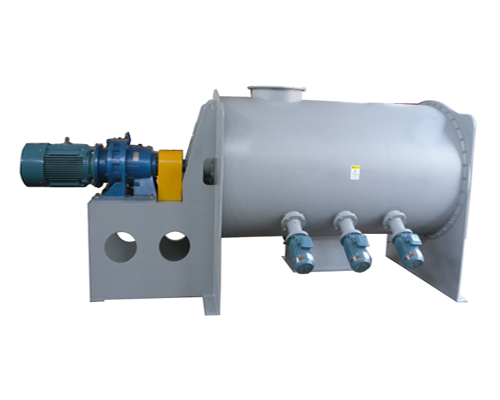對需要固——液混合的物料,混合液體通過噴液裝置均勻噴灑在筒體內運動的物料上。