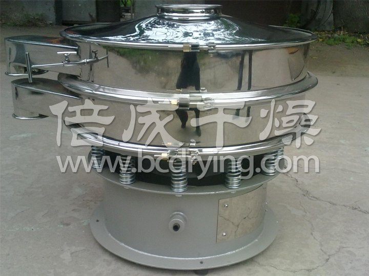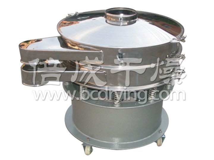 本機由料斗、振蕩室、聯軸器、電機組成。振蕩室內有偏心輪、橡膠軟件、主軸、軸承等組成。可調節的偏心重錘經馬達驅動傳達到主軸中心線,在不平衡的狀態下產生離心力,使物料強度改變,在篩內形成軌道旋渦。重錘調節器的振幅大小可根據不同物料和篩網進行調節。整機結構緊密、體積小、不揚塵、噪音低、質量高、能耗低、移動維修方便。